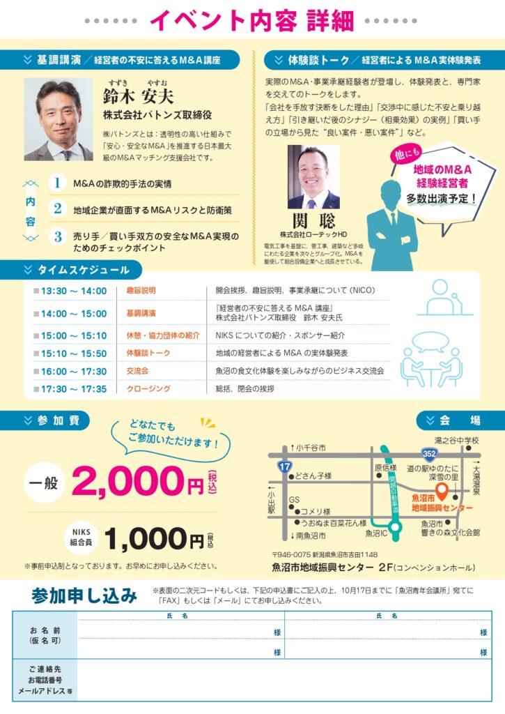 共催: にいがた産業創造機構(NICO)/NIKS/魚沼市商工会/守門広瀬商工会/南魚沼商工会 ほか