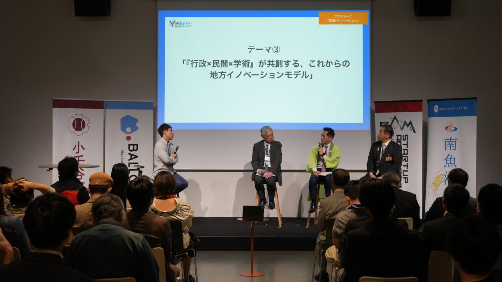 地域×都市の交点をさらに深めるクロストークセッションでは、「雪国×イノベーション」をテーマに、3名のパネリストとモデレーターによる対話が展開されました。