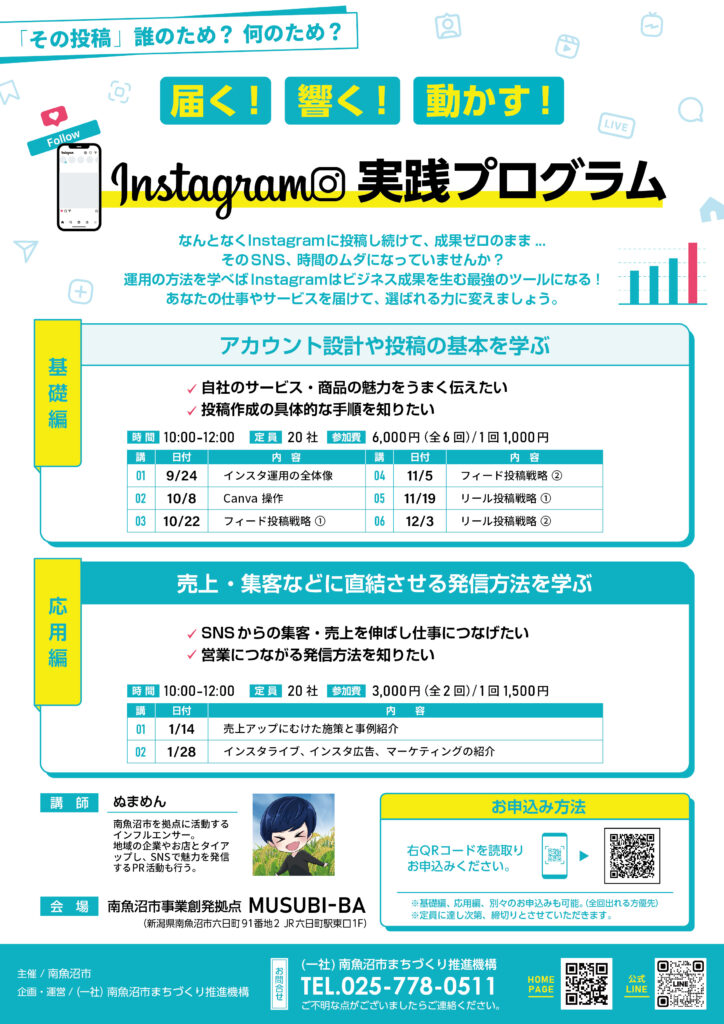 南魚沼の事業者が、デジタルという「新しい力」を使いこなし、地域経済にさらなる変化を起こしていく。そんな未来に向けて、MUSUBI-BAはこれからも「実践」に寄り添い、全力でバックアップしてまいります!